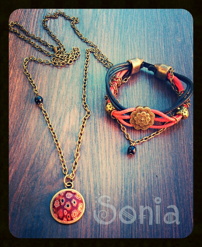 Camafeo pequeño tambien en tonos rojos con cadena de largo aproximado 68cm