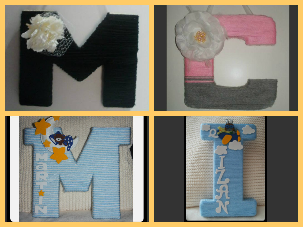 Letras de lana personalizables 100%!Se podrán hacer letras de un sólo color ó varios y elegir la personalización que las decore!desde flores a figuras!Medidas aprox. ( 26 cm de alto x 31 cm de ancho).Se incluyen cintas de tul para colgarla.